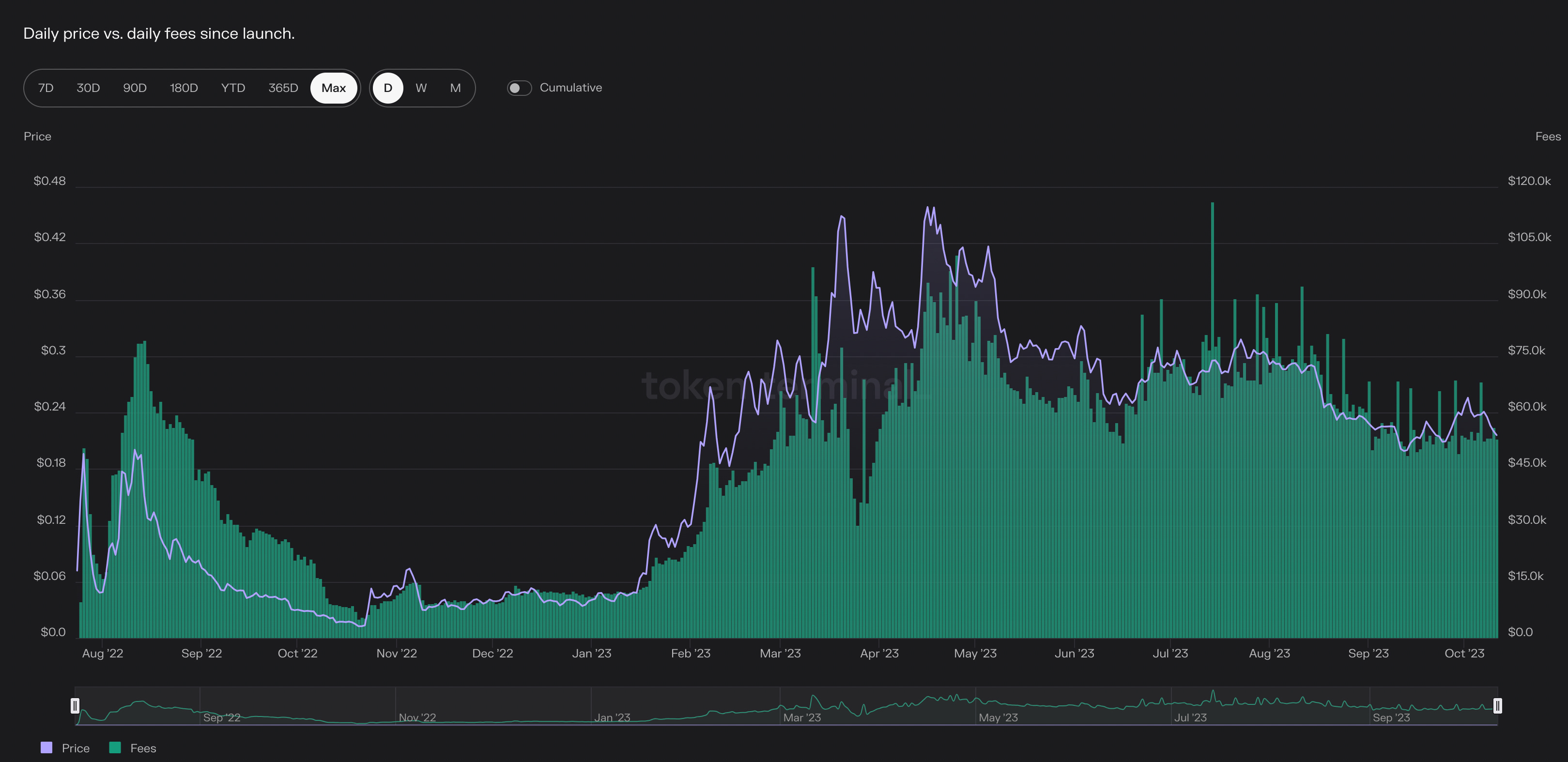 Can we expect the fees to increase anytime soon? Well potentially yes for two reasons. First, Radiant is a few days away from launching on Ethereum mainnet which could attract new liquidity and additional lenders/borrowers. Second, the ARB grant for their Arbitrum market. The combination of these could act as the catalyst needed for Radiant to reverse its downtrend in both price and daily fees.