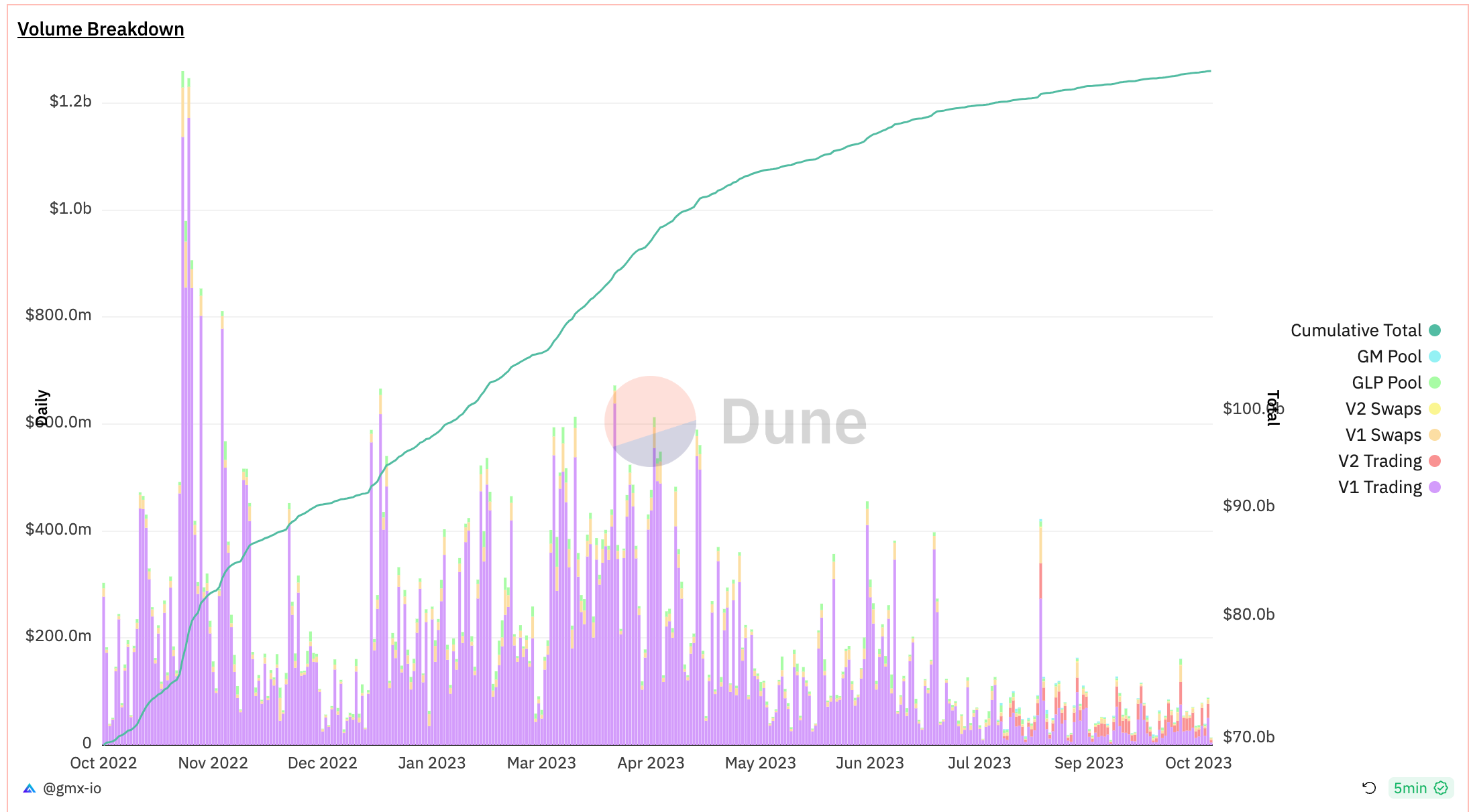 With a sizeable ARB grant that’s used both to deepen liquidity and attract traders, GMX could see a significant increase in trading volume and fees generated. As seen below, the price of $GMX recently rallied over 40% (from $30 to $42.5) after the announcement of the ARB incentives program. The majority of the move has since then been erased due to the tough market conditions.