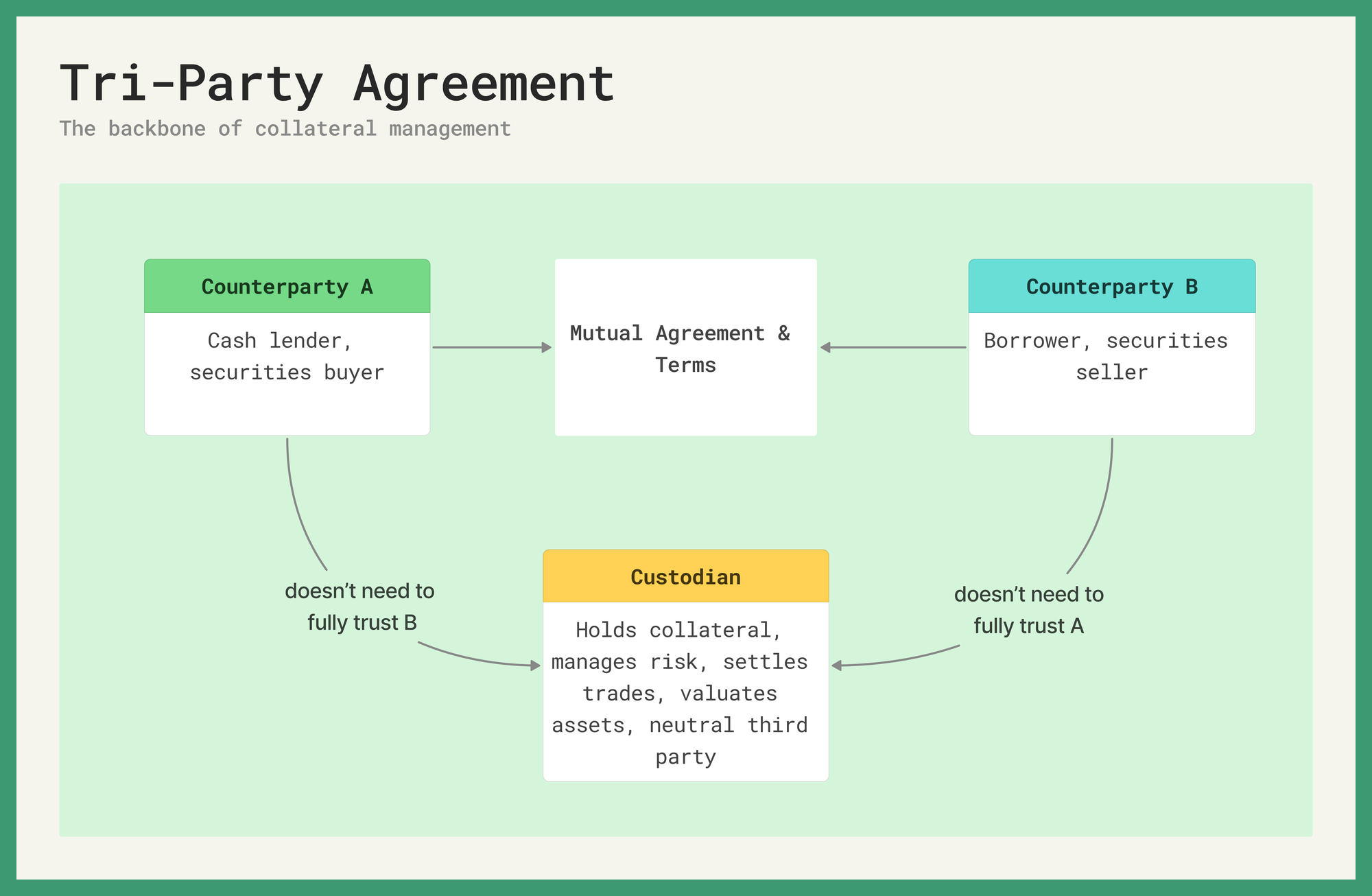 In traditional finance, tri-party arrangements are old plumbing. A custodian sits between two counterparties, holding collateral and managing risk so neither side has to fully trust the other. Repo markets, securities lending and prime brokerages have relied on this structure for decades. What Kamino has built borrows from the key principles, but diverges at execution.