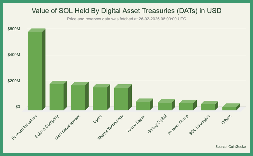 - Digital asset treasuries hold ~$1.6B in SOL today, representing a sizable addressable market if the model proves out.
