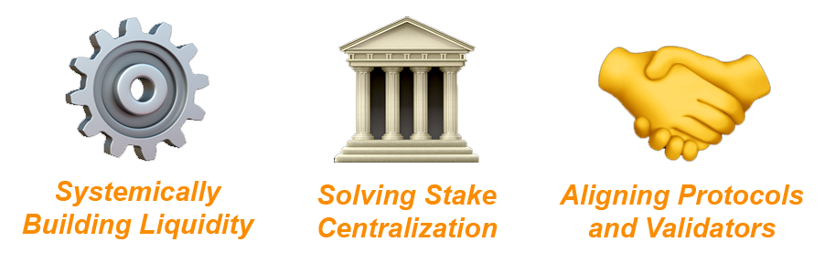 Securing the network requires a large amount of liquidity that could otherwise be used in the ecosystem. Liquid staking derivatives do solve this issue to some extent, but introduce centralization risks in the process. - Misalignment between Protocols and Validators;