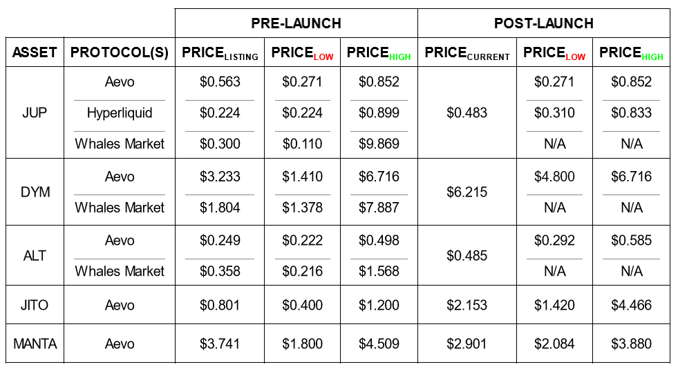Thanks to the power of hindsight and exchange APIs, we can observe the price performance of all the assets that were once traded in pre-markets and see how they are doing after officially launching.