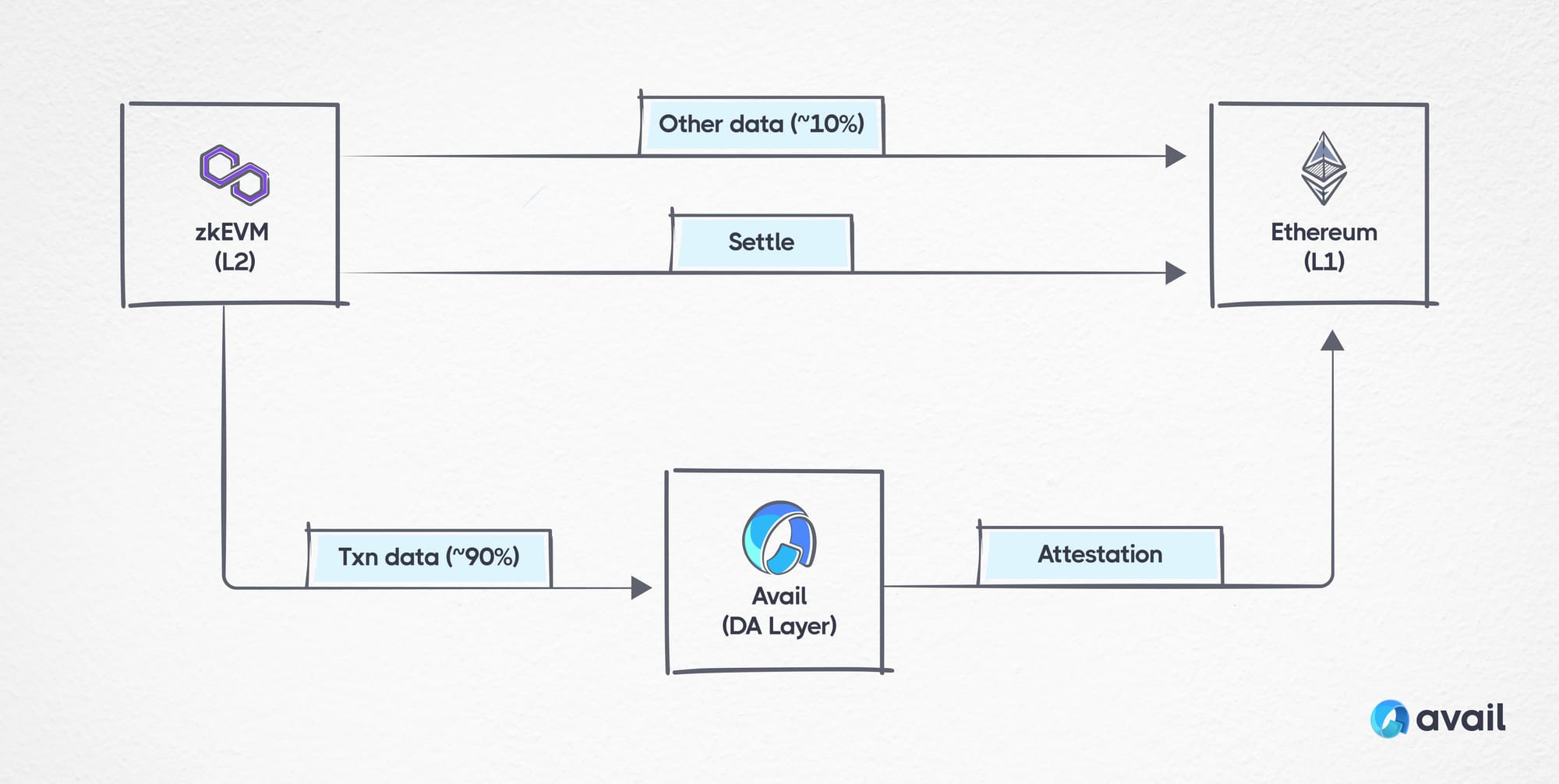 Polygon ~ In a similar fashion to the above, Avail can power ‘Polygon zkEVM Validiums by providing significantly cheaper DA. A zkEVM Validium is a modified version of the zkEVM, built with the Polygon CDK, that utilizes avail for data-availability. Avail was originally a Polygon native product but was spun off as a separate project last year.