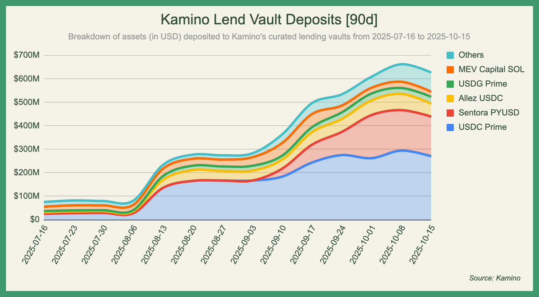 A few months ago, comprising a mere fraction of the total value locked on Kamino, the curated automated yield strategies now hold roughly a quarter of the funds deployed on the protocol following a coordinated push to onboard users to actively managed lending vaults through incentives. Double-digit returns for stablecoins proved to be a great advert, regardless of a portion of the potential gains being subject to a vesting period.