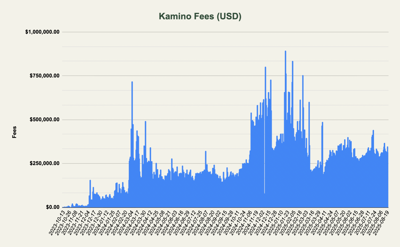 Fees remain at a steady level of more than $300k on most days with potential for upside should the tvl keep growing.