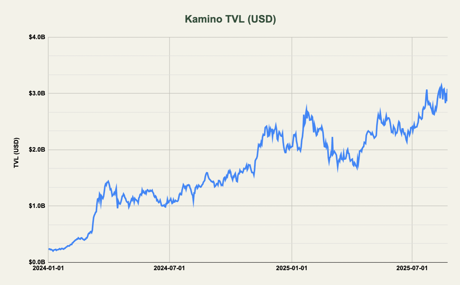 With the expansion to of several new markets and looping strategies, the TVL on Kamino keeps growing as is now sitting slightly above $3bn.