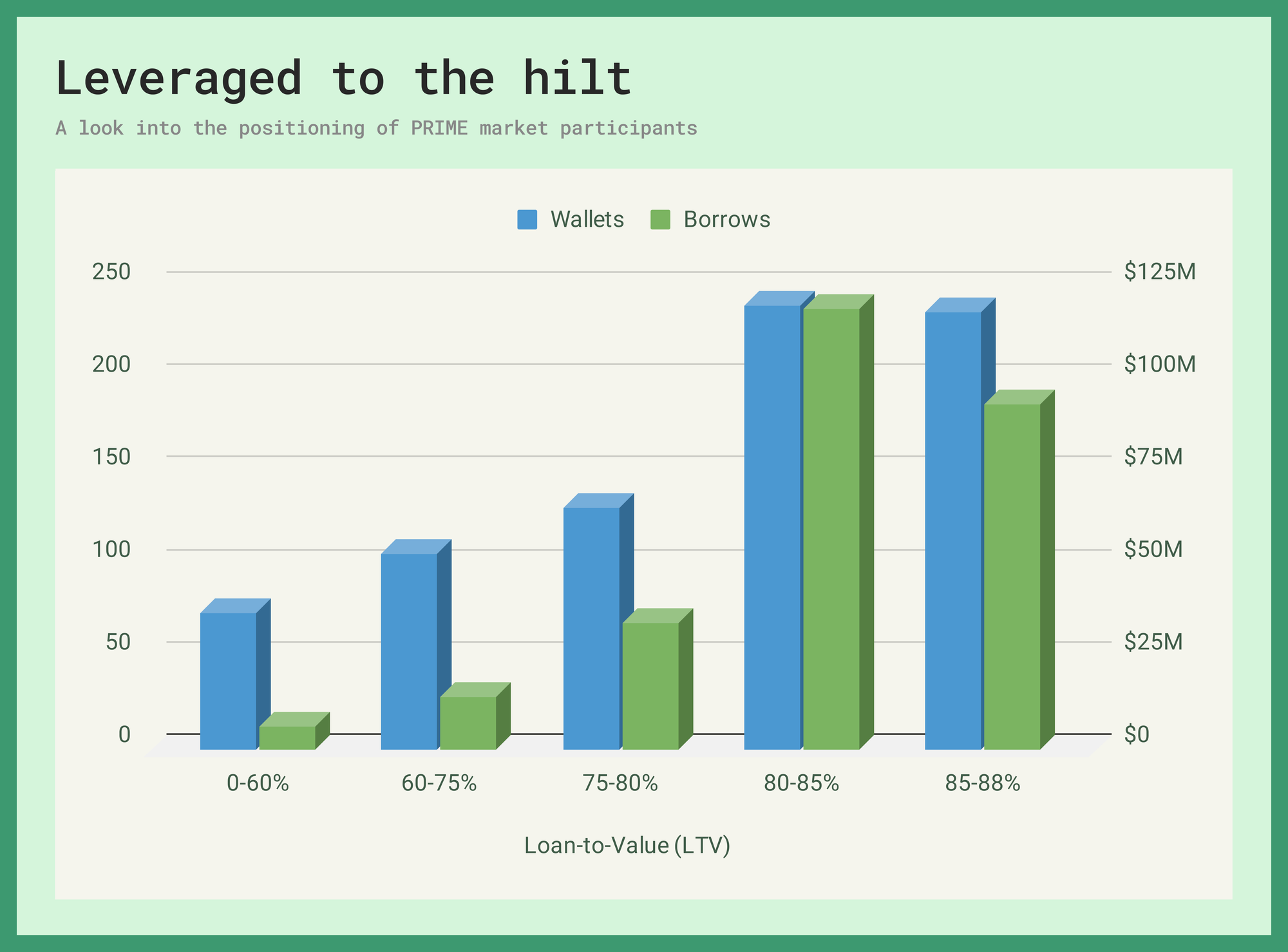 Among the market's 3488 unique wallet base, about a quarter are actively borrowing. The median borrower loan-to-value ratio is 82.3% against a maximum of 88%.
