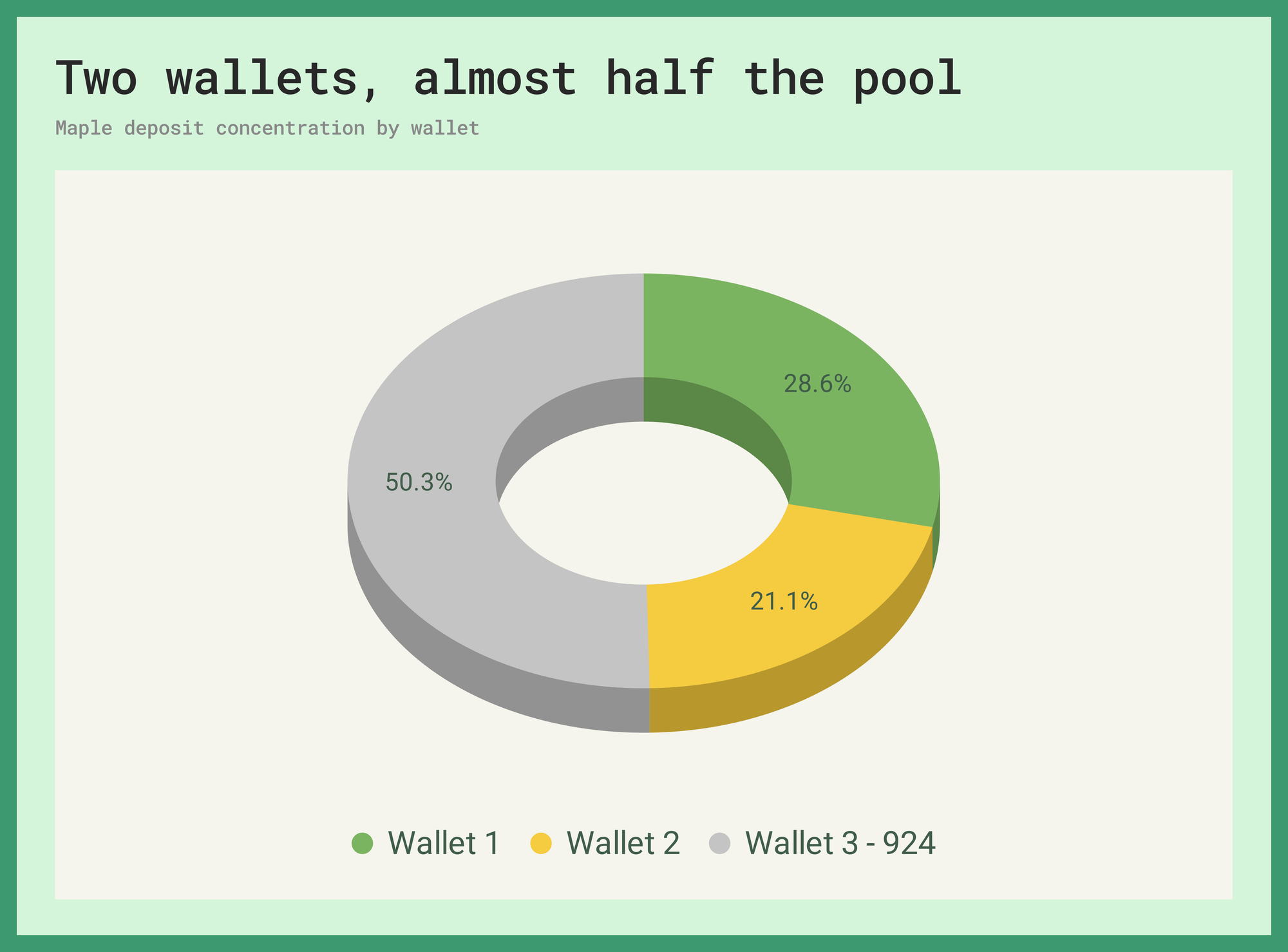 Maple's top wallet currently controls 28.6% of total market supply, $63 million from a single address. The second largest holds 21.1%, adding up to 49.7% between the two. The remaining 921 wallets split the other half. Both whales are active borrowers.